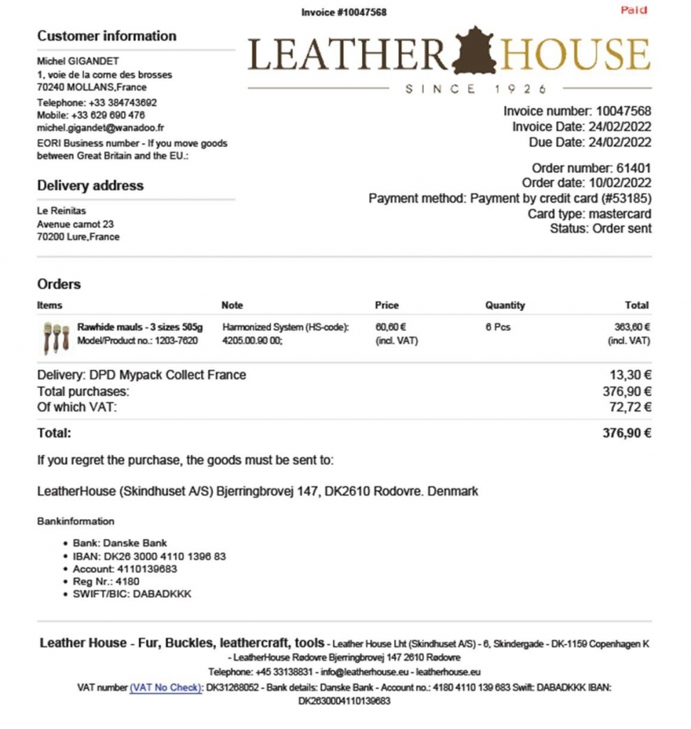 invoice leatherhouse