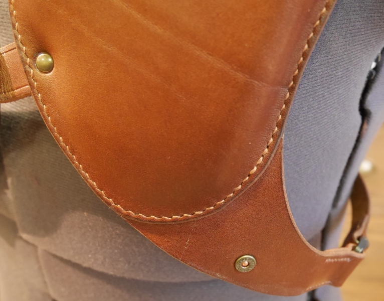 Voici un protège épaule pour gaucher. Le client c'est blessé la clavicule et à besoin d'un amortisseur lors de ces séances de chasses.