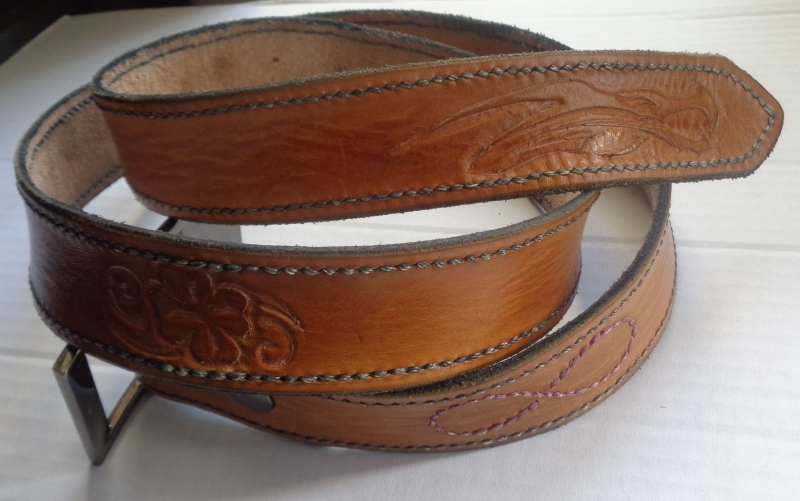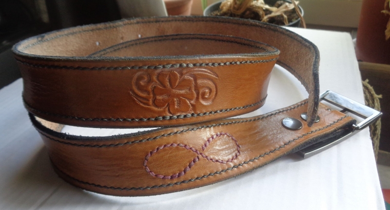 Derniers points : pour la boucle sauf choix décoratif, pas de rivets ni de vis Chicago la couture suffit. Une petite astuce pour diminuer l'épaisseur, refendre à moitié de l'épaisseur du côté chair depuis la fin de la mortaise jusqu'à la fin.