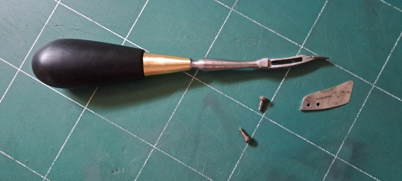 Je viens de faire l'acquisition du vieux couteau à surtailler Blanchard de mes rêves, seulement voilà, comme vous le voyez sur les photos l'extremité du couteau a été positionnée vers le bas.