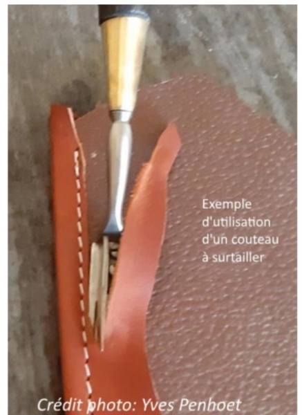 Il sert à couper la matière en surplus au plus près de la couture. En sellerie sur la couture du jonc (il me semble) ou en maroquinerie sur certains montages.